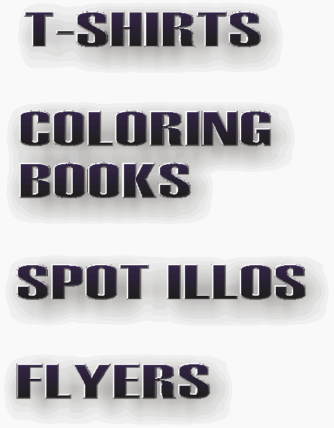 In this section of the portfolio you'll find some black and white samples. They range from spot illustrations in books to coloring book illustrations to T-Shirt designs, etc… In some you may see some splashes of color, but these are meant to enhance he black and white art work (as in many of the T-Shirt designs). |